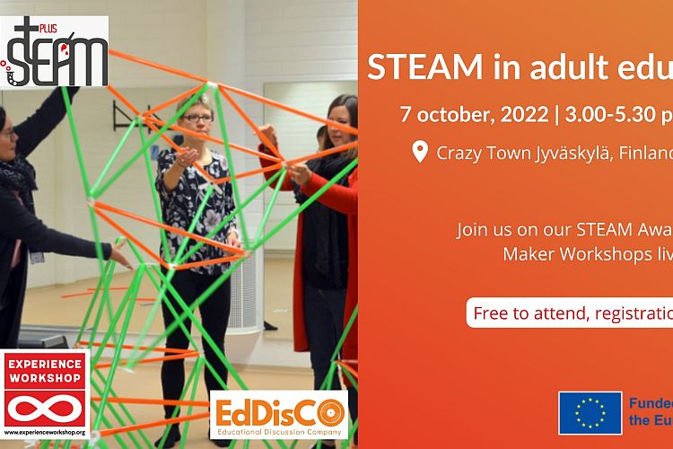 STEAM aikuisopetuksessa STEAM Plus Erasmus+ FItapahtuma STEAM aikuisopetuksessa Lähes kolmekymmentä aikuista eri kulttuuri- ja sosiaalitaustoista osallistui Experience Workshop ay:n järjestämään STEAM in Finnish…Nora30.11.2022