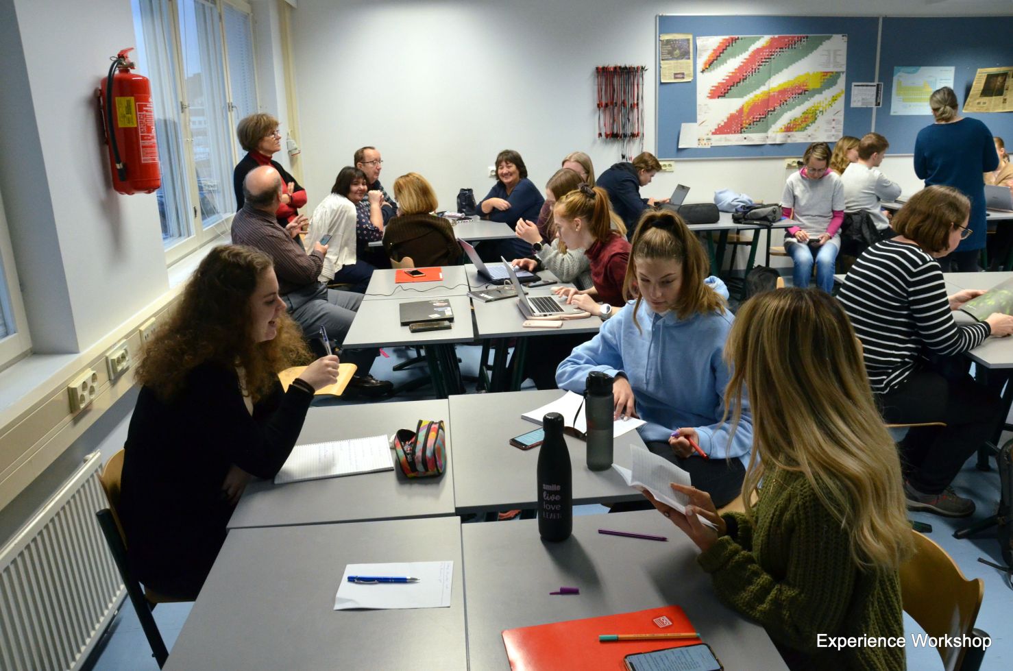 Miközben a diákok finn vagy angol nyelven tartott iskolai tanórákon dolgoztak, a tanárok a ”STEAM a középiskolai oktatásban” című képzésen vettek részt, amelyet Fenyvesi Kristóf, Kovács Eszter és Tuba Orsolya, az Experience Workshop munkatársai biztosítottak számukra a Crazy Town közösségi iroda tereiben.