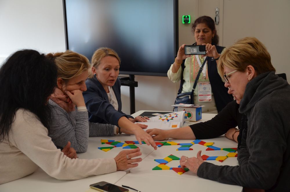 For many members of the audience, the toolkit itself was new, so Kristof Fenyvesi education researcher has used the occasion to introduce it by recalling how Hungarian artist János Saxon-Szász has invented the game as an unintentional side-product of his geometrical paintings and again unintentionally, relating closely to the thinking of well-known Hungarian mathematicians.