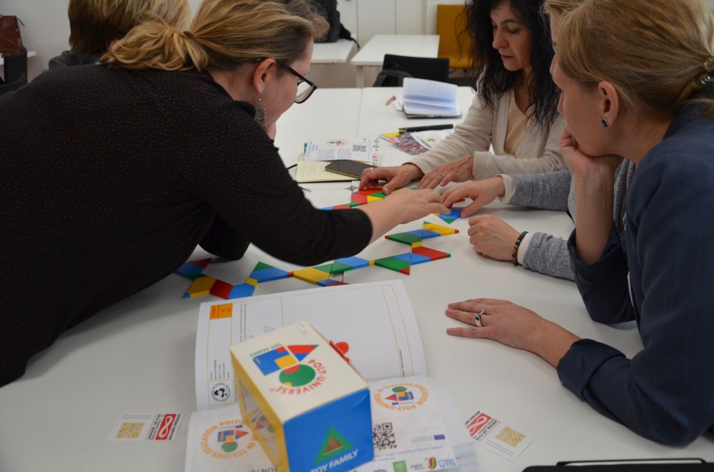 A találmány nagyon jól alkalmazhatónak bizonyult a matematika tanításához, valamint a multidiszciplináris tanításhoz és tanuláshoz, elsősorban a matematika és a művészetek bevonásával. Ebből a felfedezésből következett az első Erasmus+ projekt, amely a Poliuniverzum általános és középiskolai felhasználását vizsgálta, nevezetesen a 2017-2019 között megvalósított Poly-Universe in School Education (PUSE).